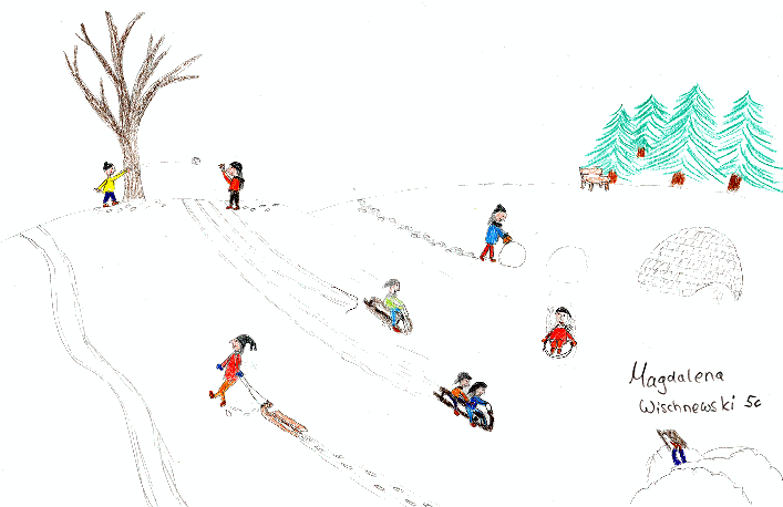 Bild: "Auf der Rodelbahn!" Magdalena Wischnewski 5c / Jan. / 2003 WWG