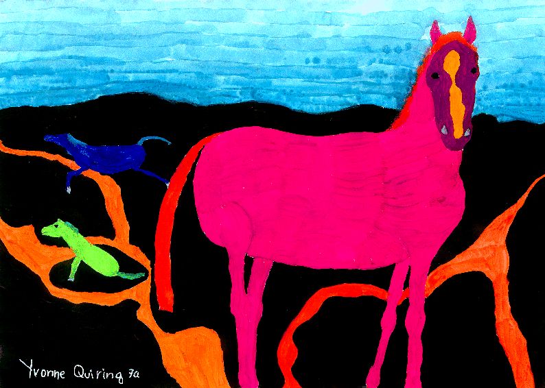 Bild: " 3 Pferde in einer Lavalandschaft!" Yvonne Quiring 7a / 2004 WWG