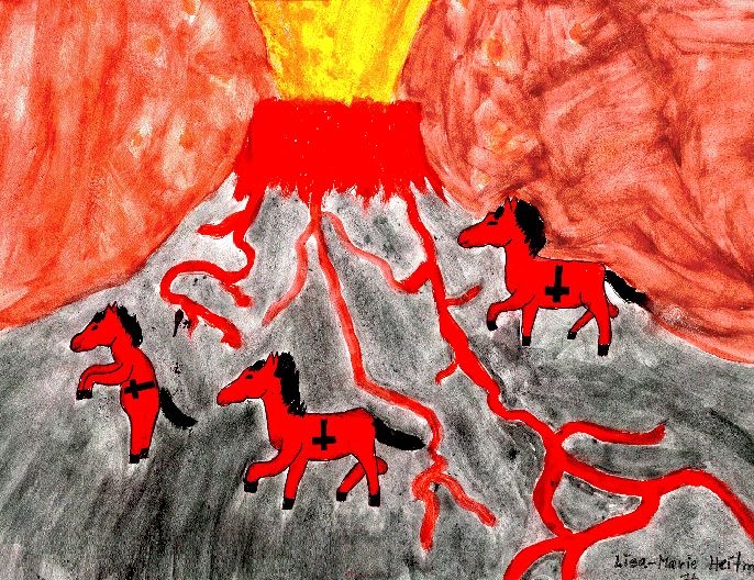 Bild: 3 Höllenpferde in der Lavalandschaft Lisa-Marie Heitmann 7b / 2004 WWG
