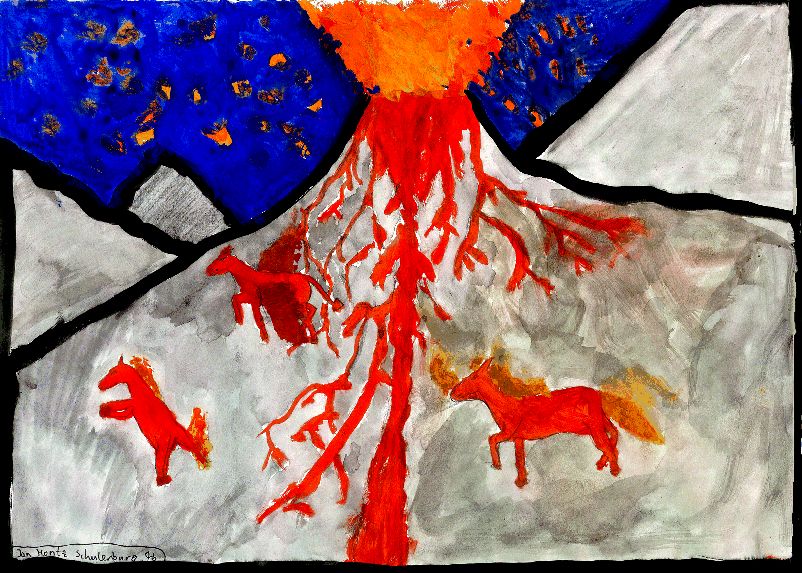 Bild: 3 Höllenpferde in der Lavalandschaft Jan Moritz Schulenburg 7b / 2004 WWG