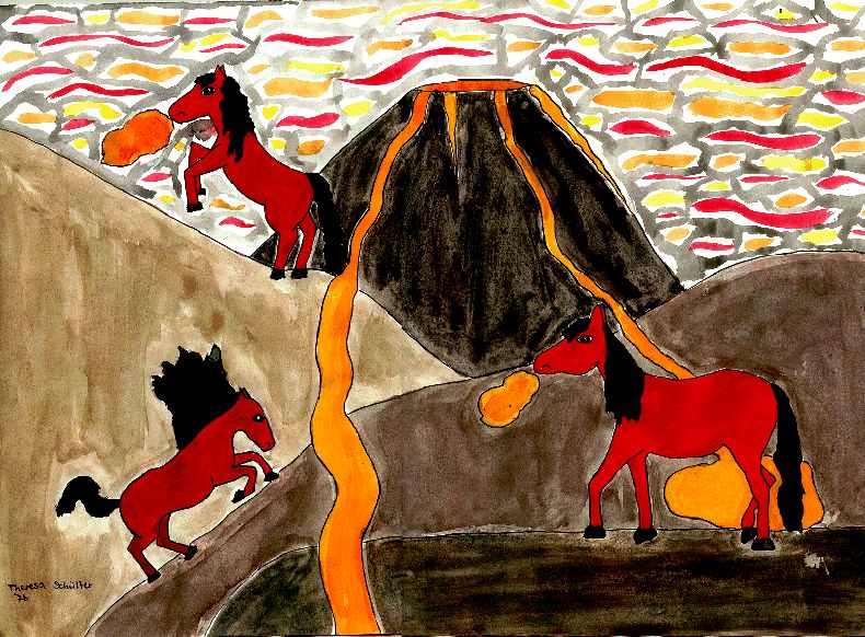 Bild: 3 Höllenpferde in der Lavalandschaft Theresa Schülter 7b / 2004 WWG