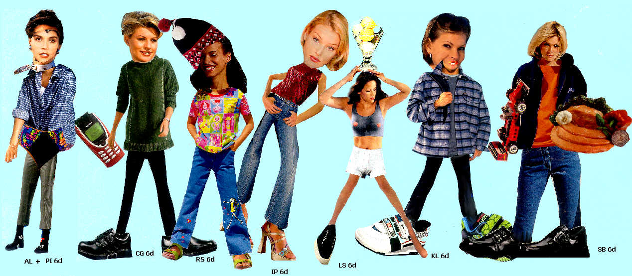 Collage: "Seltsame Leute!!!" Gemeinschaftsarbeit der 6d / 2002 WWG